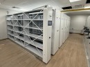 Разработали проект расстановки стеллажей в архиве, произвели и установили систему хранения на базе передвижных стеллажей с электронным приводом и механическим управлением. Все конструкции установлены на фальшпол для выравнивания полового покрытия. Высота стеллажей адаптирована под балки: ниже в местах перекрытий и выше там, где пространство позволяет. Использованы полочные стеллажи под бумажный формат А4.