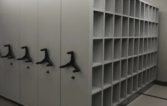 В секциях предполагается хранение предметов небольшого размера. Мобильные стеллажи в два раза увеличивают вместимость объемов хранения.