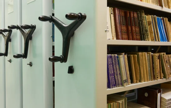 Хранилище книг может быть оборудовано специальными металлическими стеллажами для библиотеки, имеющими большую высоту при небольшой глубине. Устойчивость и долговечность их работы обеспечивается специальной конструкцией мобильного основания и рельсовой системы