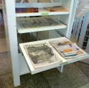 Газетный накопитель с выдвижными полками (на основе стационарного стеллажа серии СА).