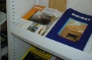Стеллажи с наклонными полками используются для выкладки образцов периодических изданий в библиотеках.