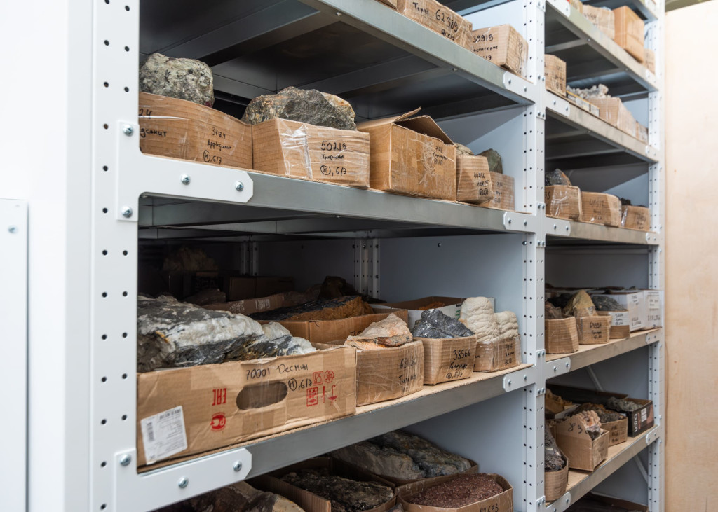 Стеллажи для хранения камней и экспонатов геологических коллекций представляют собой системы хранения, предназначенные для надежного и безопасного размещения различных образцов. Это прочная металлическая конструкция, способная выдерживать большой вес. Некоторые модели могут быть оборудованы ящиками для хранения мелких предметов, таких как минералы или образцы породы.