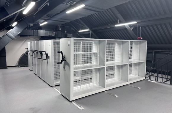 Мобильные стеллажи с сетками для картин и вертикального хранения фондов